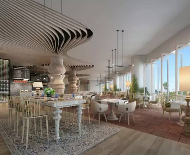 一個(gè)七星酒店,不僅讓你住得藝術(shù)、玩得藝術(shù),更讓你吃得藝術(shù)。是的,你往下看,這么高冷藝術(shù)的地方就是酒店的餐廳!