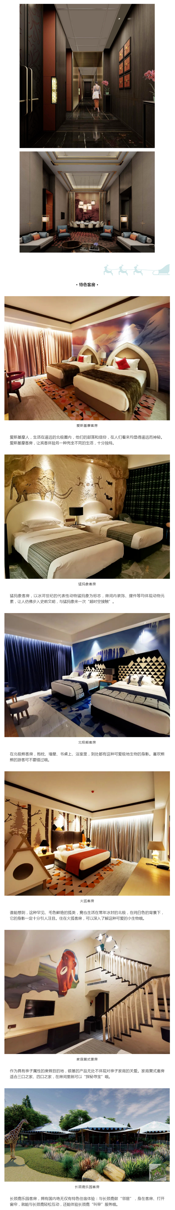 秉承人類與動(dòng)物和諧相處的設(shè)計(jì)理念,為游客精心打造了一個(gè)童話世界:共擁有1314間主題客房、風(fēng)格鮮明的特色主題餐廳及中餐廳、互動(dòng)式雪鹿全日自助餐廳、3151㎡國際會議中心及室外婚禮儀式亭、琳瑯滿目的商業(yè)街、特色燒烤露營樂園、室外滑道游樂園、9洞迷你高爾夫、健身中心、足浴館、兒童駕校、室內(nèi)外恒溫泳池等一系列打造酒店內(nèi)部配套設(shè)施。