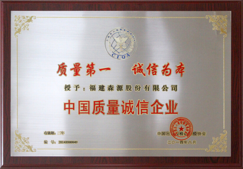 中國出入境檢驗(yàn)檢疫協(xié)會(huì)授予森源家具“中國質(zhì)量誠信企業(yè)”榮譽(yù)稱號(hào)。